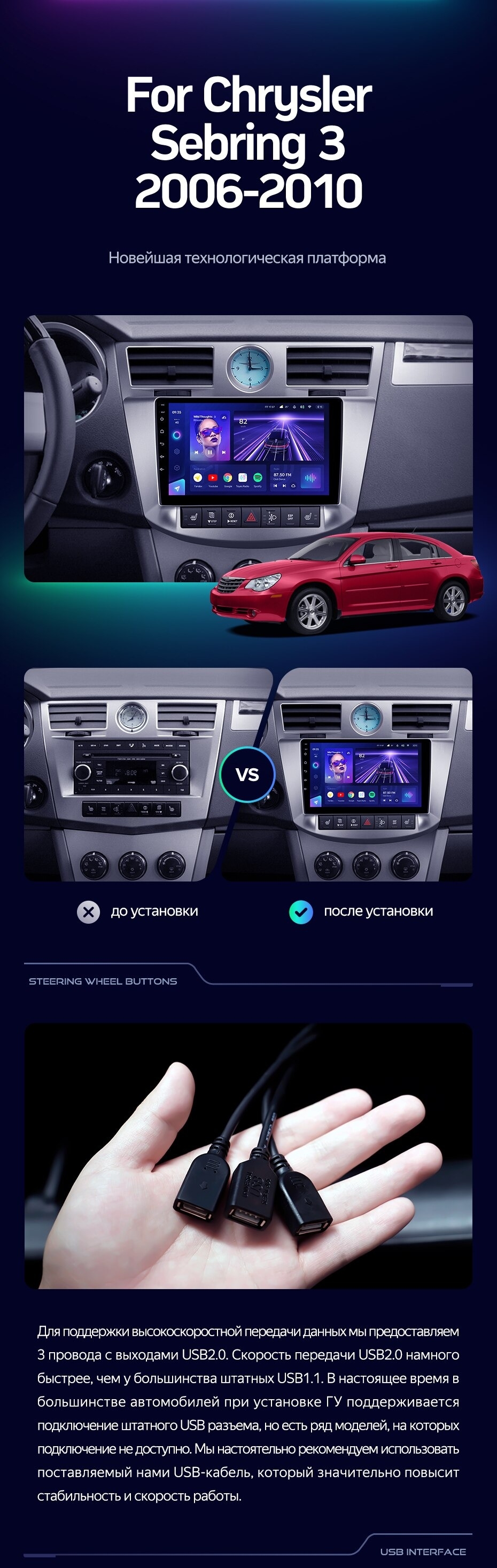 Штатная магнитола Teyes CC3 2K 6/128 Chrysler Sebring 3 JS (2006-2010) (13") - купить всего за 50 160 руб. в интернет-магазине в Улан-Удэ Teyes.com.ru. ✓ Самый лучший выбор мультимедиа ✓ Лучшая замена штатному ГУ ✓ Тел. +7 (800) 775-31-74