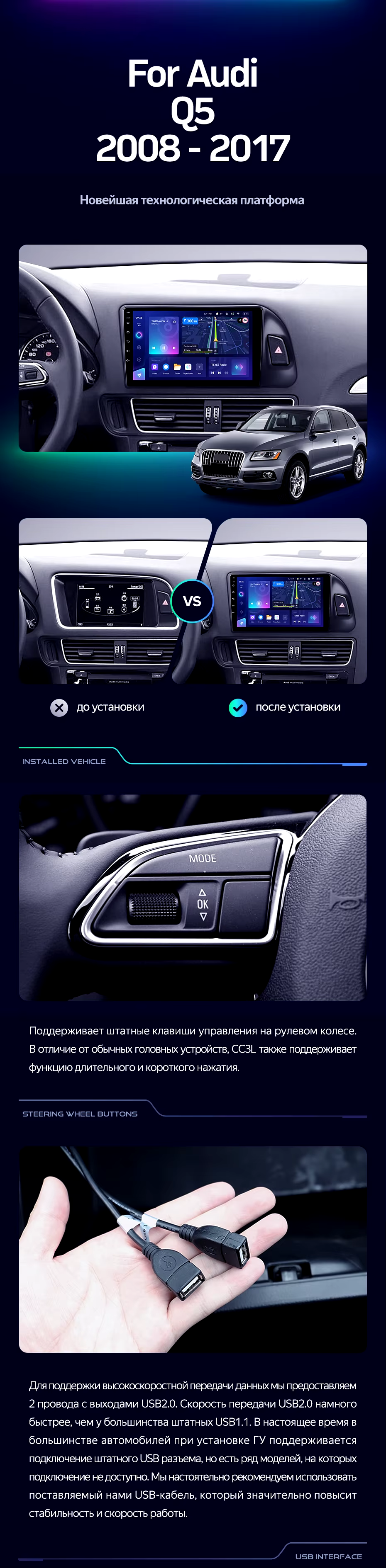 Штатная магнитола Teyes CC3L 4/32 Audi Q5 8R (2008-2017) Тип-B - купить всего за 33 270 руб. в интернет-магазине в Улан-Удэ Teyes.com.ru. ✓ Самый лучший выбор мультимедиа ✓ Лучшая замена штатному ГУ ✓ Тел. +7 (800) 775-31-74