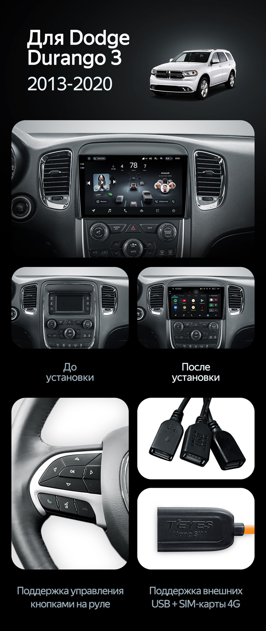 Штатная магнитола Teyes CC3L 4/32 Dodge Durango 3 (2013-2020) - купить всего за 31 100 руб. в интернет-магазине в Улан-Удэ Teyes.com.ru. ✓ Самый лучший выбор мультимедиа ✓ Лучшая замена штатному ГУ ✓ Тел. +7 (800) 775-31-74