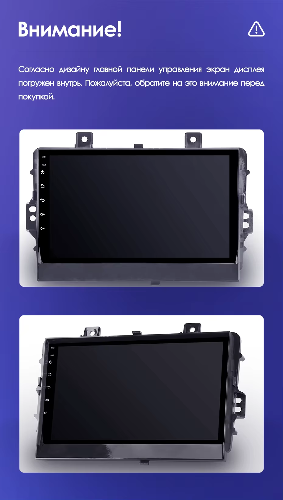 - Мультимедийные возможности: Поддерживает функцию разделения экрана для одновременной работы двух приложений. Имеется встроенный гироскоп и возможность подключения до 6 аналоговых камер.