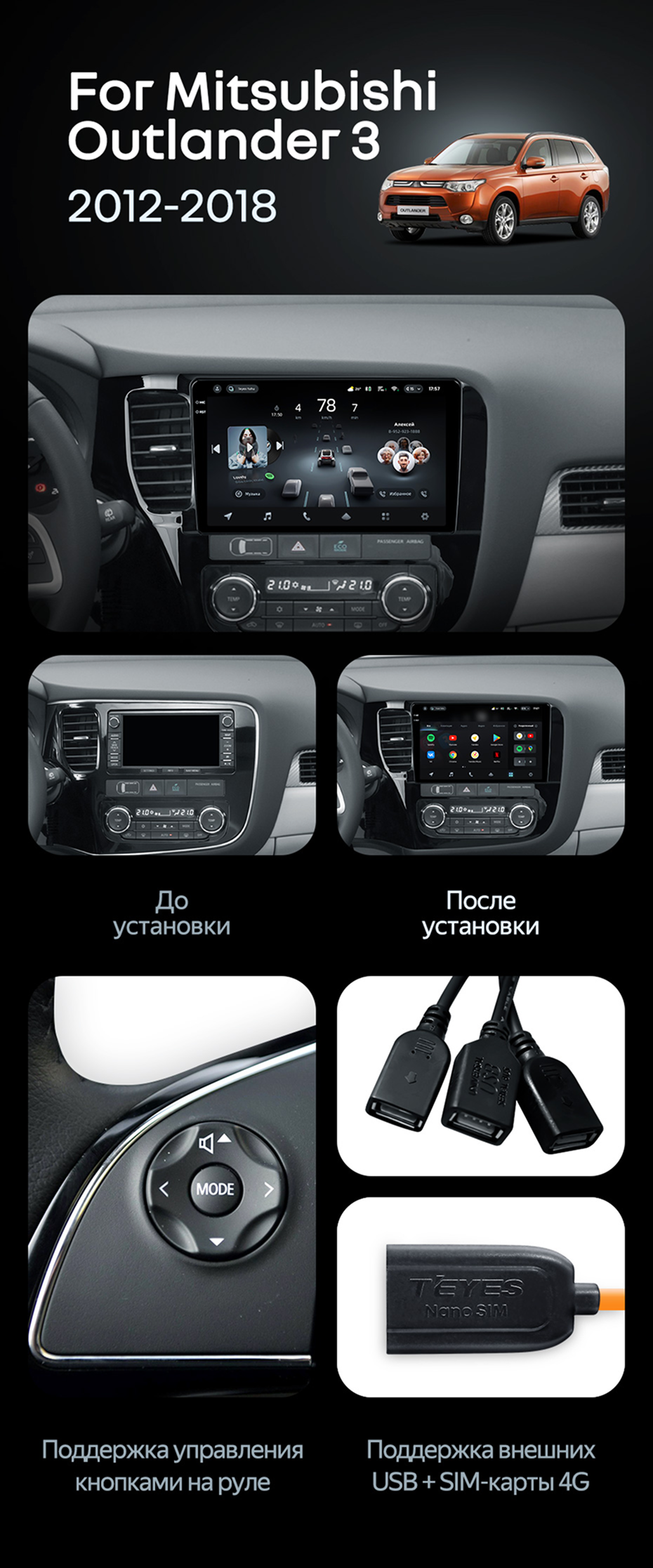 Штатная магнитола Teyes CC4 6/64 Mitsubishi Outlander 3 GF0W GG0W (2012-2018) Тип-B - купить всего за 43 940 руб. в интернет-магазине в Улан-Удэ Teyes.com.ru. ✓ Самый лучший выбор мультимедиа ✓ Лучшая замена штатному ГУ ✓ Тел. +7 (800) 775-31-74