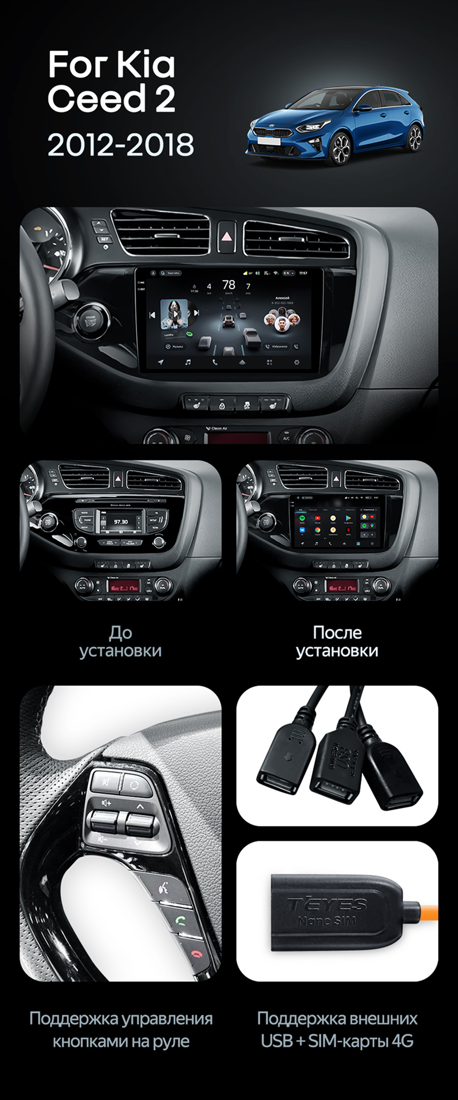 Штатная магнитола Teyes CC4 Pro 12/256 Kia Ceed 2 JD (2012-2018) - купить всего за 69 640 руб. в интернет-магазине в Улан-Удэ Teyes.com.ru. ✓ Самый лучший выбор мультимедиа ✓ Лучшая замена штатному ГУ ✓ Тел. +7 (800) 775-31-74