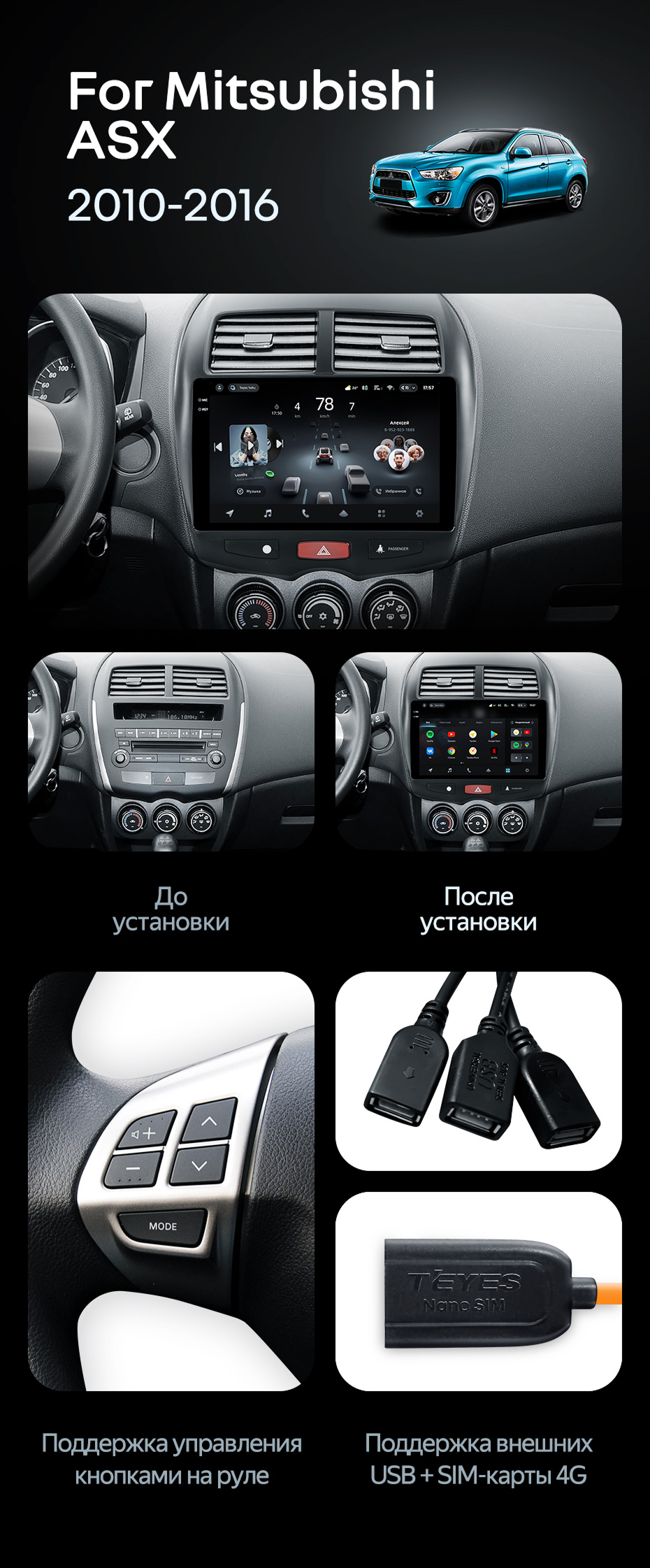 Штатная магнитола Teyes CC4 Pro 12/256 Mitsubishi ASX 1 (2010-2016) Тип-B - купить всего за 69 740 руб. в интернет-магазине в Улан-Удэ Teyes.com.ru. ✓ Самый лучший выбор мультимедиа ✓ Лучшая замена штатному ГУ ✓ Тел. +7 (800) 775-31-74