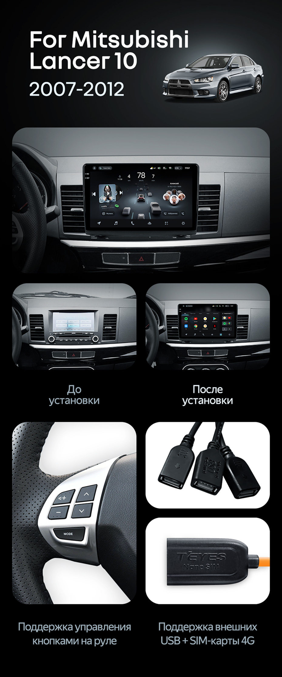Штатная магнитола Teyes CC4 Pro 12/256 Mitsubishi Lancer 10 CY (2007-2012) Тип-B - купить всего за 69 750 руб. в интернет-магазине в Улан-Удэ Teyes.com.ru. ✓ Самый лучший выбор мультимедиа ✓ Лучшая замена штатному ГУ ✓ Тел. +7 (800) 775-31-74