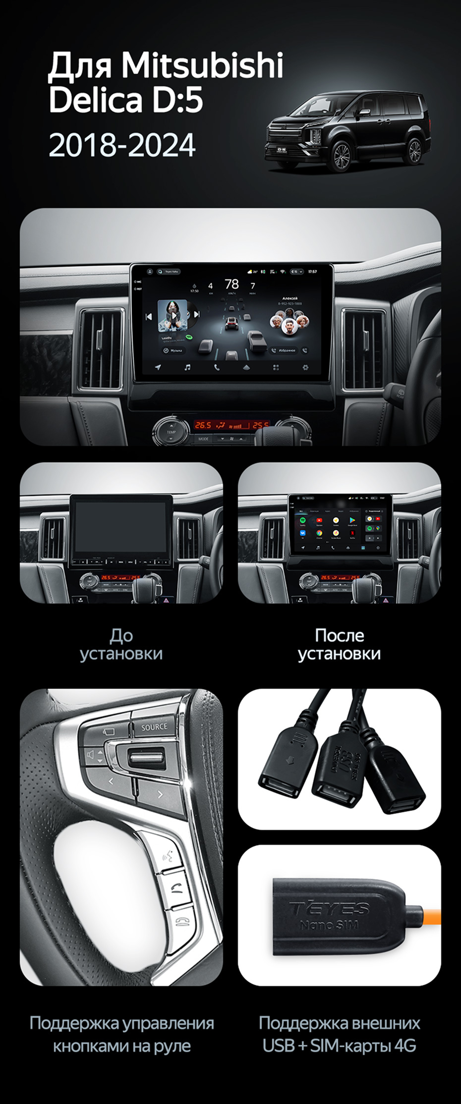 Штатная магнитола Teyes CC4 Pro 8/128 Mitsubishi Delica D:5 (2018-2024) - купить всего за 58 940 руб. в интернет-магазине в Улан-Удэ Teyes.com.ru. ✓ Самый лучший выбор мультимедиа ✓ Лучшая замена штатному ГУ ✓ Тел. +7 (800) 775-31-74