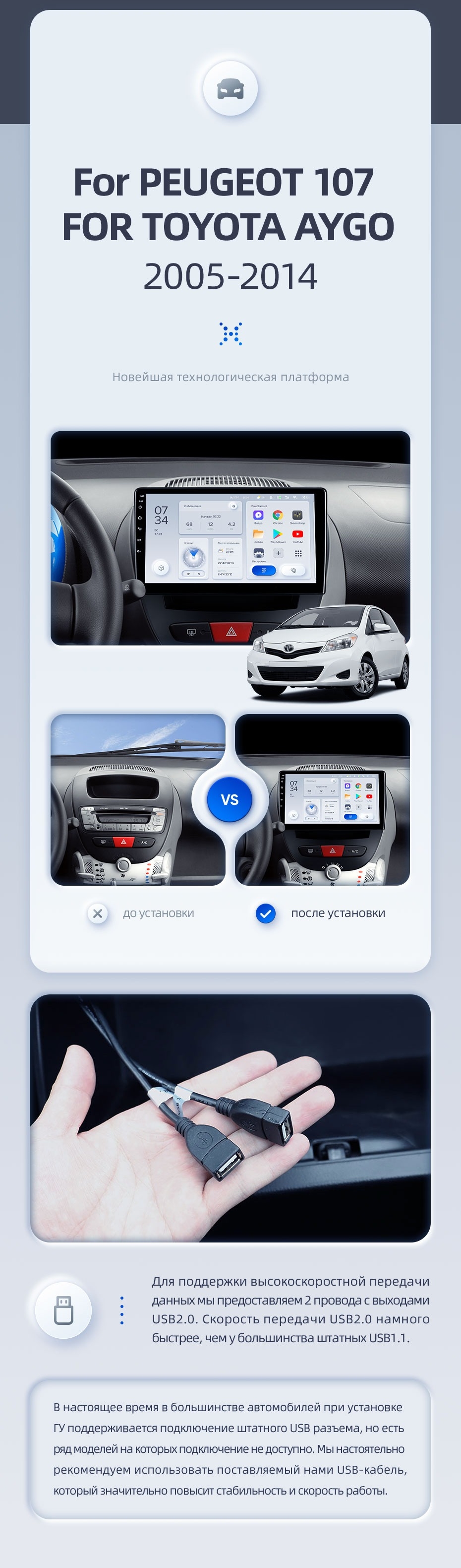 | USB | 3×USB 2.0 + USB 3.0 | Доп. аксессуары | Передняя/задняя AHD-камера, DVR-регистратор, TPMS, парковочный OBD, Type-C → HDMI |