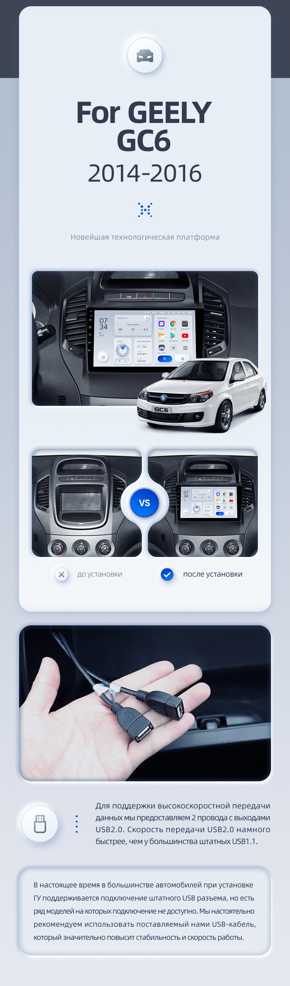 | USB | 3×USB 2.0 + USB 3.0 | Доп. аксессуары | Передняя/задняя AHD-камера, DVR-регистратор, TPMS, парковочный OBD, Type-C → HDMI |