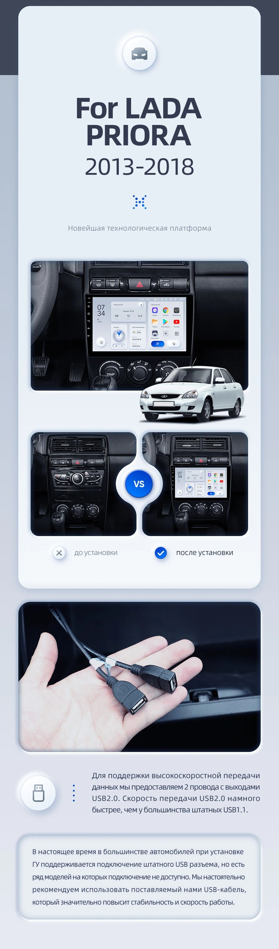 | USB | 3×USB 2.0 + USB 3.0 | Доп. аксессуары | Передняя/задняя AHD-камера, DVR-регистратор, TPMS, парковочный OBD, Type-C → HDMI |